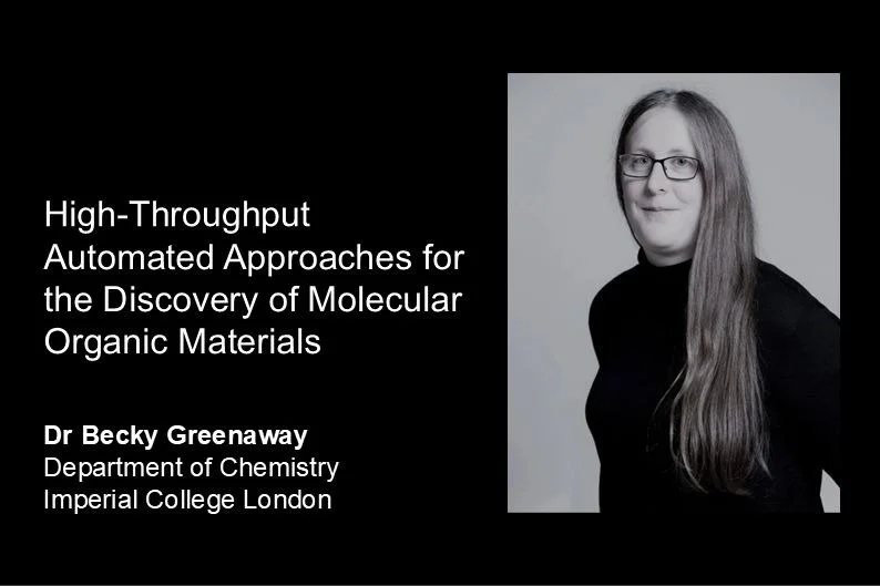 March 2024: Becky presented a talk ‘High-Throughput Approaches for the Discovery of Organic Materials’ at UCL for their Chemical Sustainability Research Theme seminar.